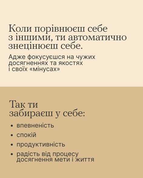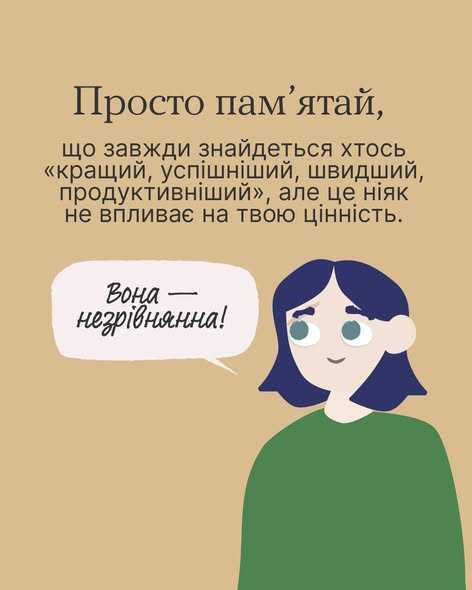 Тебе достатньо. Тож якщо захочеш стати краще, порівнюй себе лише із собою в минулому